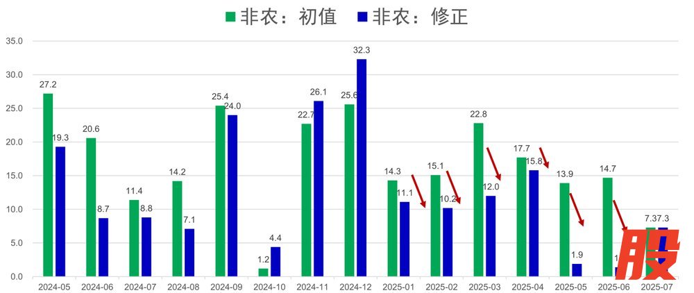 首先,就业出现实质性市场松动。非农就业数据连续多月被大幅下修,2025年1-7月均值仅8.5万人,远低于2024年的16.7万人,引发市场对就业稳健性及消费可持续性的担忧。