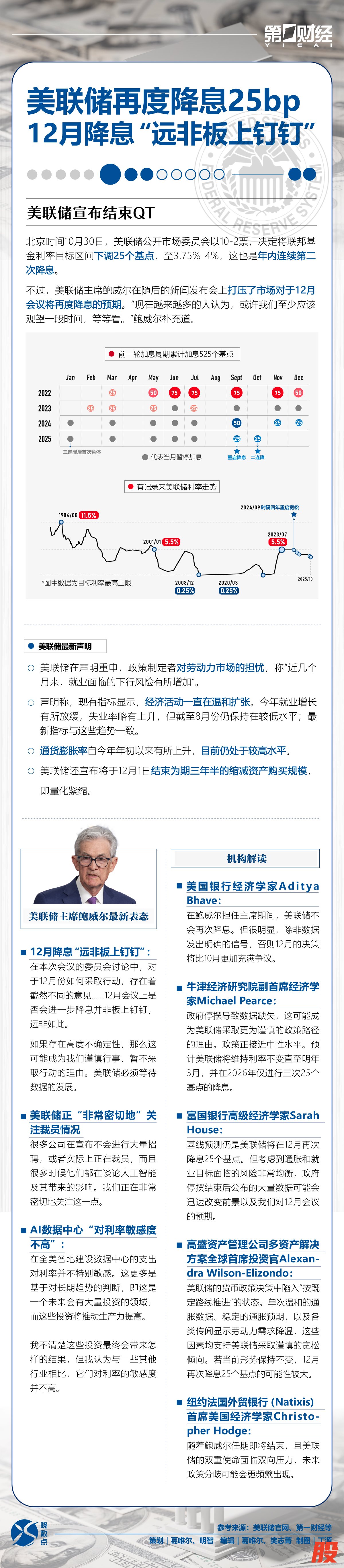 晓数点|美联储再度降息25bp,机构如何解读?晓数点|美联储再度降息25bp,机构如何解读?
